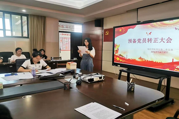 6月5日下午,我院学生第二党支部在5-419召开预备党员转正大会,支部书记李钰婷同志主持会议,支部全体党员参加会议。
