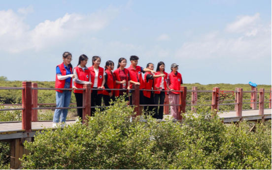 14 日上午,宣讲团来到金海湾红树林生态保护区,近距离观察“海洋卫士”红树林,了解其在消浪护岸、净化海水、维持近海生物多样性等方面的重要作用,强化了保护珍稀植物和生态环境的意识。此外,针对夏日溺水事故风险上升的情况,宣讲团积极向儿童及其家长普及防溺水知识,并通过有奖竞答的形式提高小朋友的学习兴趣和记忆,减少悲剧的发生。