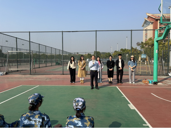2024年1月6日下午,为进一步做好2024级新生的关心、爱护工作,电信学院党委副书记杨琳、副院长邓安安、团委书记容川带领2024级新生辅导员等一行人到达西区田径场看望正在军训的2024级新生们。