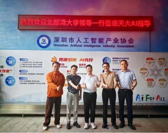 王远干一行与祁老师及其研发团队就AI智能体合作、东盟AI竞赛、人才培养等工作进行了座谈,并听取了天火AI技术负责人许涛介绍深圳市人工智能产业协会的相关工作,以及大学生AI创新大赛的筹办进展。王远干向祁生胜老师等与会人员介绍了学校的办学特色、人才培养及学科建设情况,以及电子与信息工程学院近年来办学方向。会后,王远干一行在祁生胜老师的陪同下,参观了深圳市人工智能产业协会及其合作企业的AI产品展览。