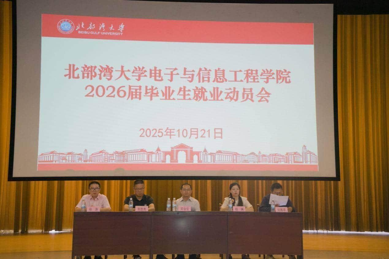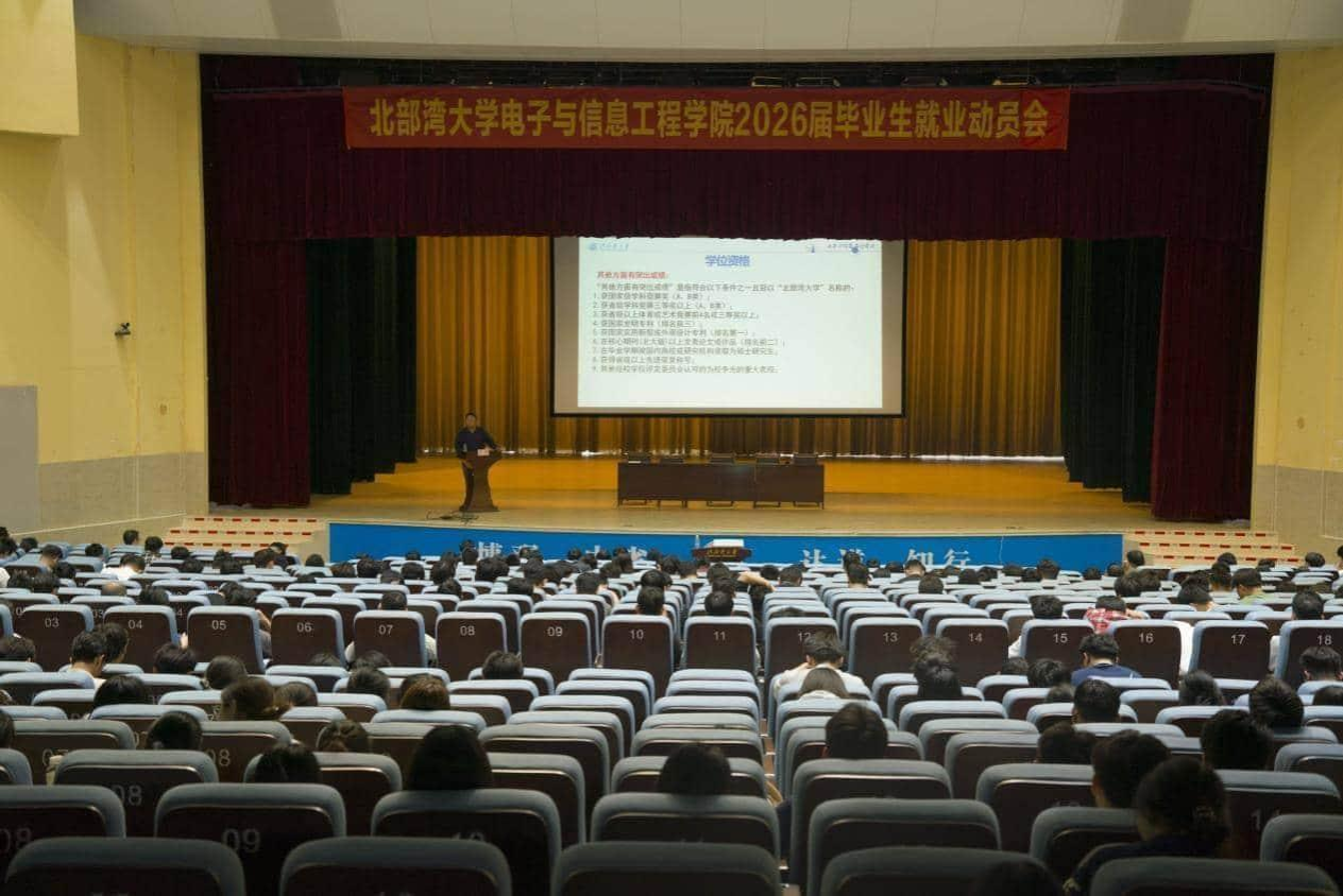 10月21日下午,电信学院在学校大礼堂召开2026届毕业生就业动员会,学院全体班子成员、毕业班辅导员、系部主任、班主任代表、2026届全体毕业生参加会议,会议由学院党委副书记杨琳主持。