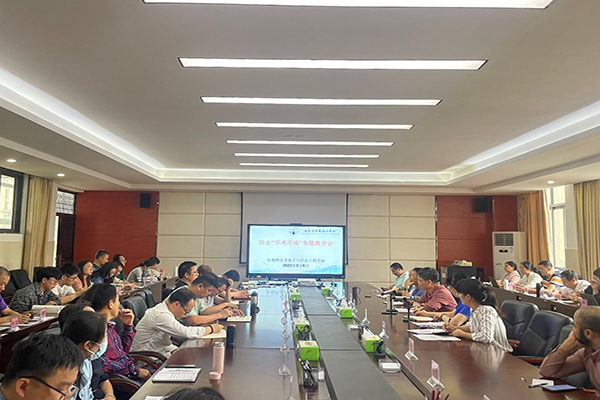 2023年5月8日下午,电信学院在5-419会议室召开“防止学术不端”主题教育活动,学院全体教职工参加活动,活动由院长梁家海主持。