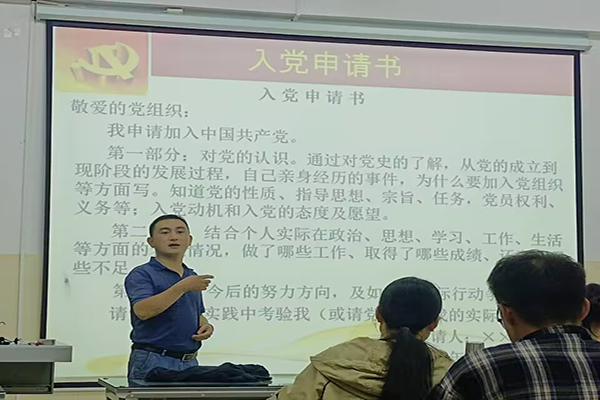 首先,陈书记向学员们介绍了入党常用文书的类型。接着,陈书记强调了入党文书写作对于党员个人和组织的重要性,不仅关系到党员个人的发展与前途,也关系到个人档案的存档与利用。随后,陈书记从格式、内容、注意事项等方面详细讲解如何写好入党申请书、思想汇报、自传、入党志愿书、转正申请书等入党常用文书,并结合一些典型案例,向学员们传授了相关的写作技巧,务必要注意真实、实情、真理。