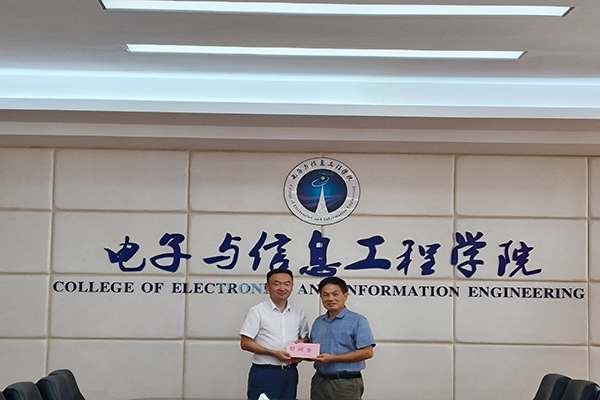 苗剑校长(左一)与李长彬老师(右一)合影留念