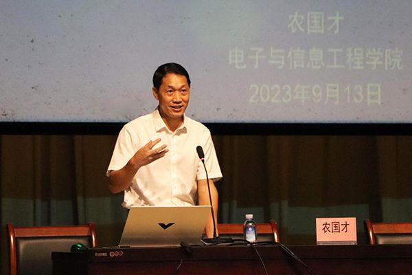 为进一步加强2023级新生对自身专业知识的学习与社会人才需求的认知,提升新生的认同感和归属感,帮助他们尽快融入电信学院大家庭,9月13日上午,电信学院在学校大礼堂开展2023级新生入学认知教育讲座,2023级全体新生、辅导员参加了讲座,讲座由梁家海院长和农国才副院长主讲。为进一步加强2023级新生对自身专业知识的学习与社会人才需求的认知,提升新生的认同感和归属感,帮助他们尽快融入电信学院大家庭,9月13日上午,电信学院在学校大礼堂开展2023级新生入学认知教育讲座,2023级全体新生、辅导员参加了讲座,讲座由梁家海院长和农国才副院长主讲。
