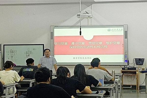 9月22日晚,我院分党校在8B-303教室开展“认真学习党章 严格遵守党章”“党的先进性和纯洁性”党课专题培训,本次培训邀请了教育学院党委书记叶汝坤进行授课,我院和建工学院预备党员参加了此次培训。