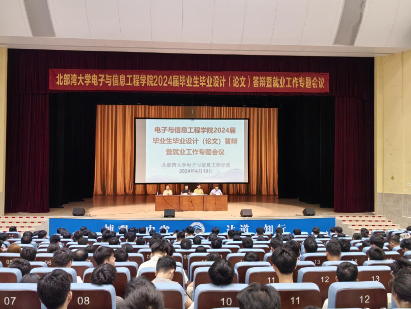 2024年4月19日上午,电信学院在学校礼堂召开2024届毕业生毕业设计(论文)答辩暨就业工作专题会议。学院院长王远干主持会议,学院党委书记卓杰先、副院长邓安安、副院长农国才、毕业班辅导员及2024届全体毕业生参加会议。