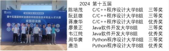 6月1日,第十五届蓝桥杯全国软件和信息技术专业人才大赛总决赛成在广西大学举行,我院7个学生分别参加了C/C++程序设计大学B组、Java软件开发大学B组、Python程序设计立大学B组等三个赛项。经过赛场的激烈竞技,获得了4个三等奖、3个优秀奖的好成绩。
