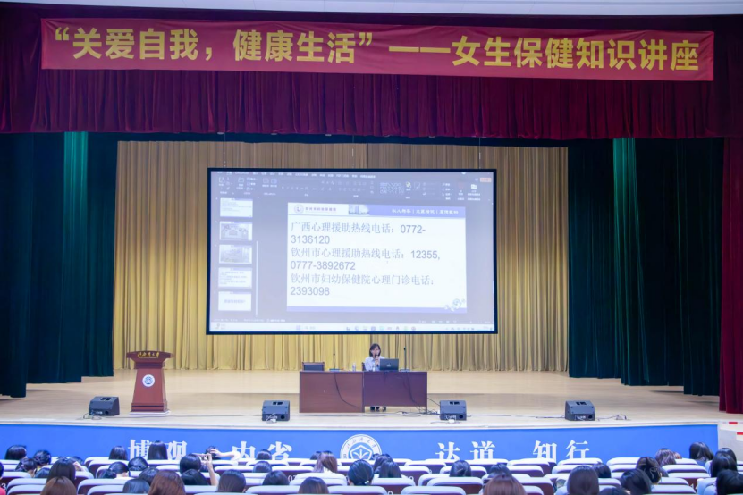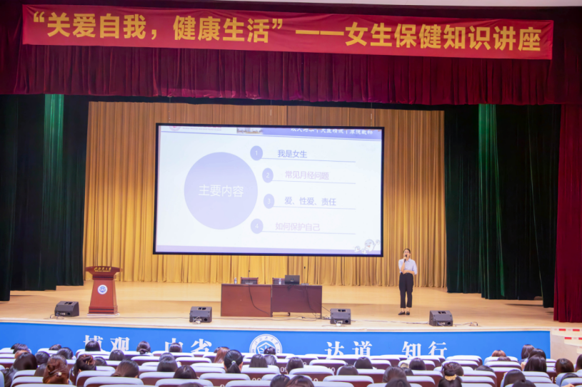2024年10月31日晚,我院在大礼堂举办了一场以“关爱自我,健康生活”为主题的女生保健知识专题讲座,我院全体女生以及其他学院女生也积极踊跃参加。