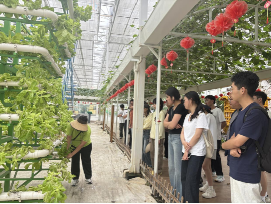 下午,研学活动转入“荷美覃塘湖美四季”田园综合体项目。学生们了解到了现代农业与文旅融合的创新模式,分析乡村振兴背景下的产业机遇。接着,在中共广西壮族自治区代表大会旧址,一堂沉浸式思政课通过珍贵史料和场景复原,激励青年学子传承红色基因,担当时代使命。学生陆晓玟感慨:“革命先辈的奋斗精神与今日企业的创新实践,让我深刻体会到‘知行合一’的意义。”