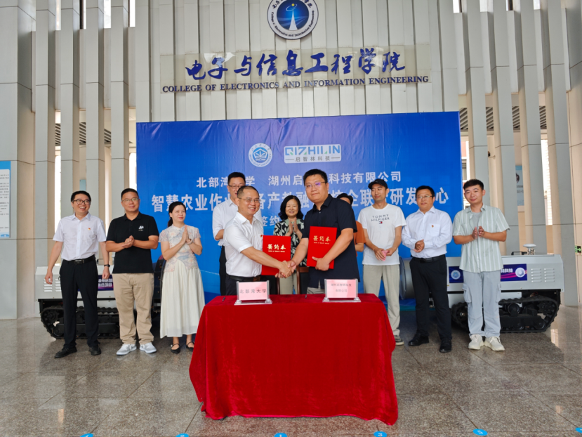 电子与信息工程学院党委书记邓安安与湖州启智林科技有限公司总经理王洋代表双方签署合作协议。