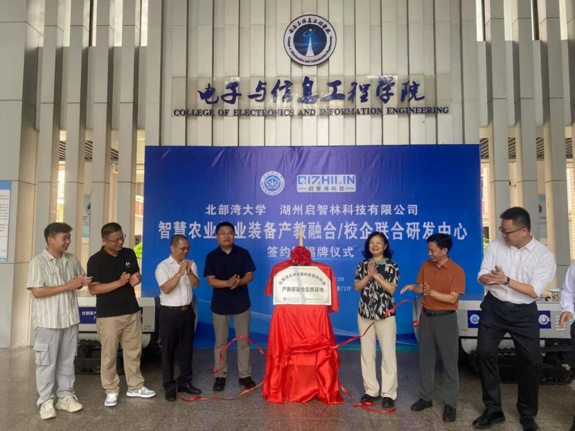 7月2日上午,学校与湖州启智林科技有限公司共建智慧农业作业装备产教融合/校企联合研发中心签约暨揭牌仪式在电子与信息工程学院举行。校党委常委、副校长陈丹,湖州启智林科技有限公司总经理王洋出席仪式并共同为研发中心揭牌。