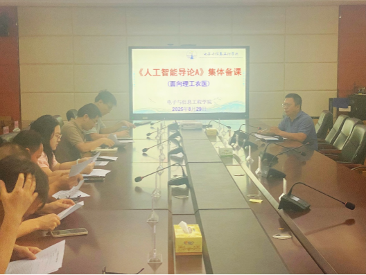 面向全校的《人工智能导论》通识课由电子与信息工程学院承担,为确保有序高质量开展教学活动。2025年8月29日,电信学院组织承担《人工智能导论》课程的全体教师集体备课。会议由副院长刘秀平主持,围绕开课时间、团队分工、课程内容、课程考核等问题进行了详细的研讨,特别是采用了“学院包干”、“AI与专业融合”等创新性的设计,以突出“以学生为中心”、“面向目标产出导向”的教学理念,更好的融入到教学活动中。